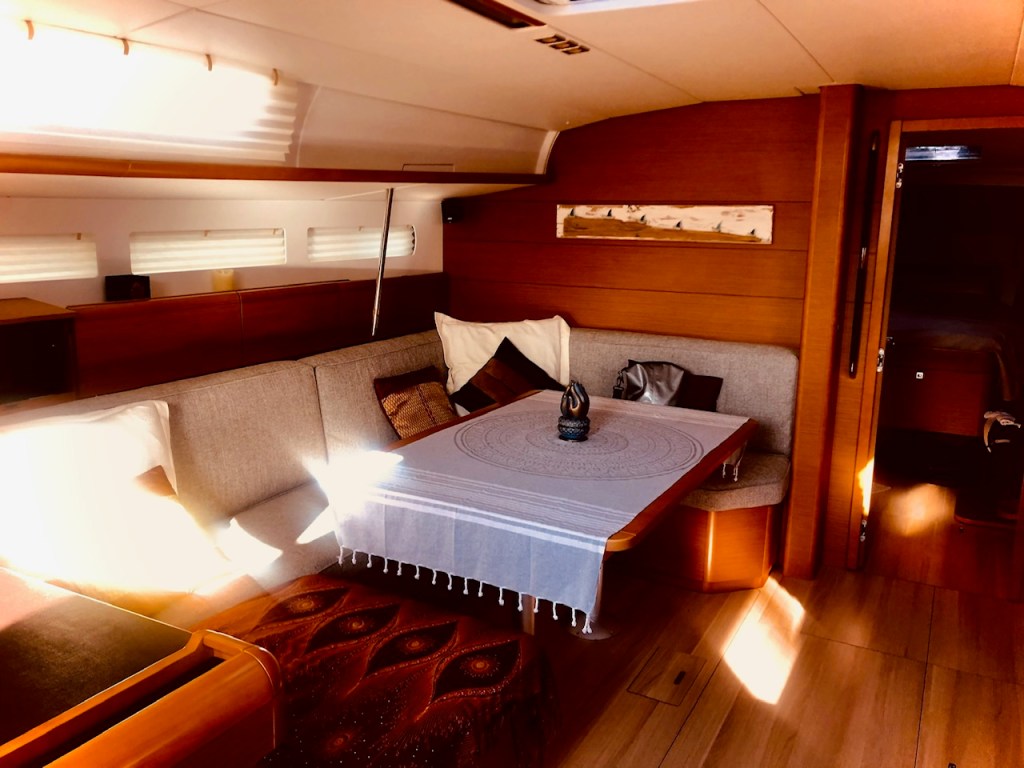 Il carattere di Joy: elegante e performante, dotata di Randa steccata, fiocco olimpico, Gennaker, Code0 e trinchetta, è in grado di sfruttare tutti i venti per navigare dolcemente o dinamicamente.Allestita con grande attenzione per i dettagli e l’alta qualità degli interni, Joy conferma in tutti i sensi il suo carattere minimal, elegante, performante e riservato. Tutte le cabine hanno materassi e cuscini memory anti acaro e totalmente sanificati con procedure biologiche.